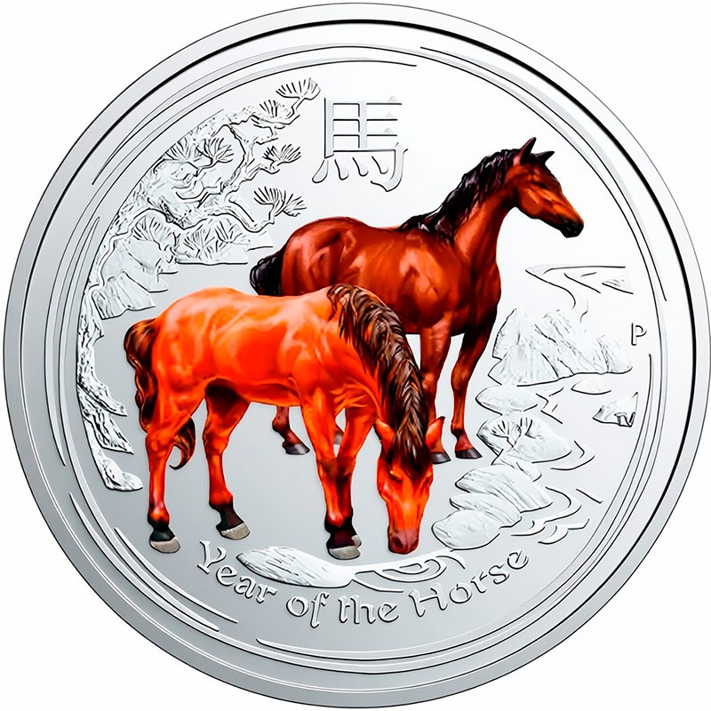 Серебряная монета Австралии "Год Лошади" 2014 г.в.(с цветом), 15.55 г чистого серебра (проба 999)