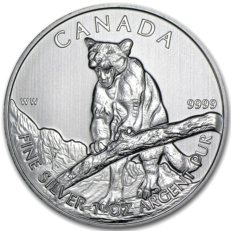 Канадская серебряная инвестиционная монета. «Пума» - монета из новой серии Королевского канадского монетного двора - «Грозные хищники».