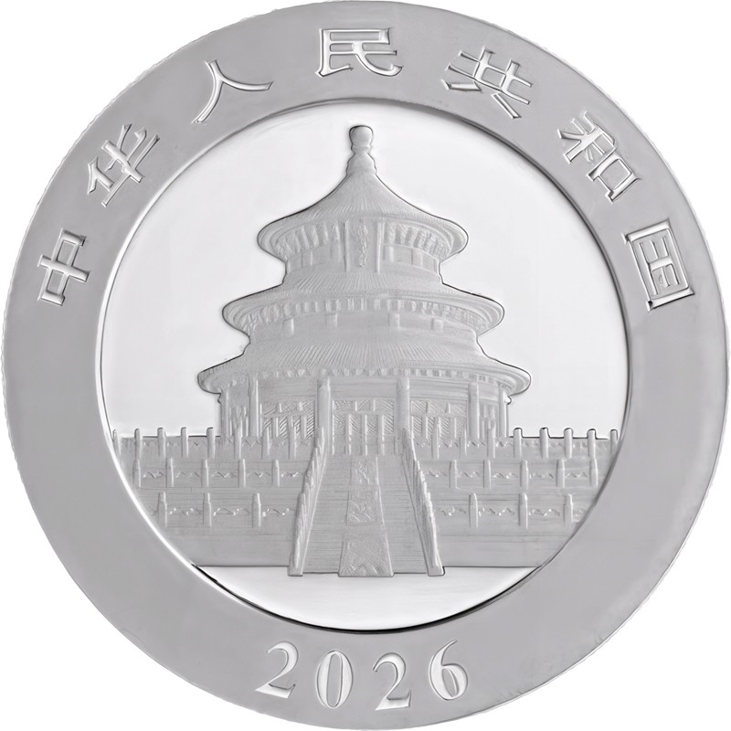 Серебряная монета Китая "Панда" 2026 г.в., 30 г чистого серебра (проба 999)