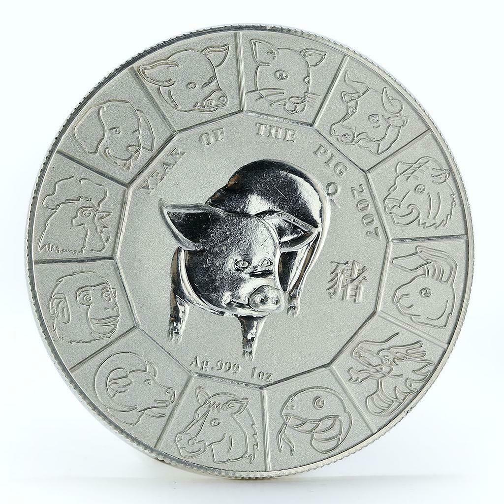 Серебряная монета весом 1 тройскую унцию (31,1 г), выпущенная монетным двором Новой Зеландии. Серия "Лунный календарь" - Год Свиньи- 2007 год.