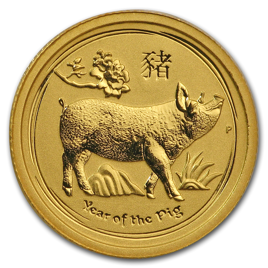 Золотая монета из второй серии "Лунный календарь" - год Свиньи 2019 года выпуска