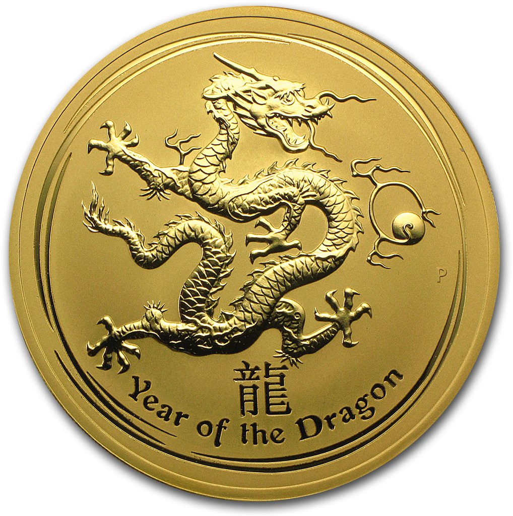 Золотая монета из серии "Лунный календарь" - год Дракона выпущена Пертским монетным двором в 2012 году.
