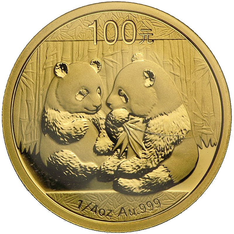 Коллекционная серия монет "Золотая Панда" началась в 1982 году, каждый год происходит обновление дизайна монеты. Содержит 1/4 унции 999 пробы золота