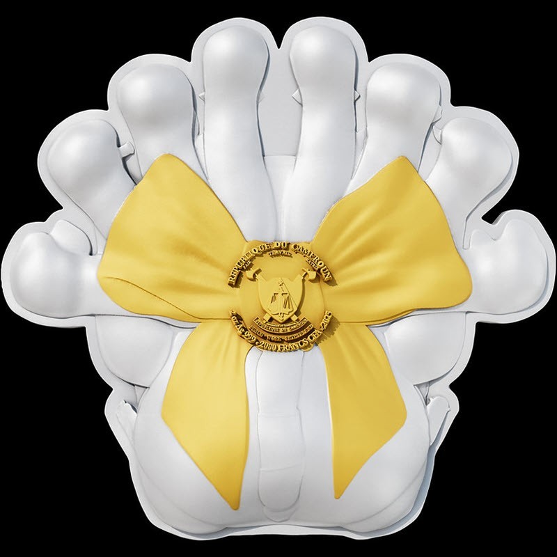 На аверсе изображен герб Камеруна. Вокруг герба надпись: REPUBLIQUE DU CAMEROUN 2 OZ Ag 999 2000 FRANCS CFA 2025 (страна-эмитент, вес и проба серебра, номинал, год чеканки).