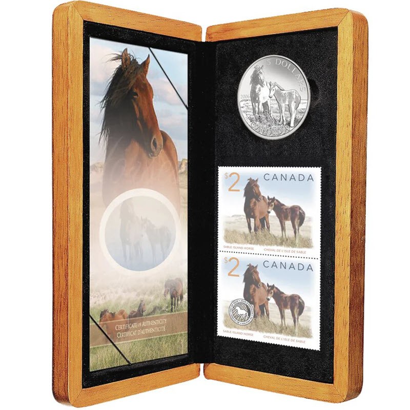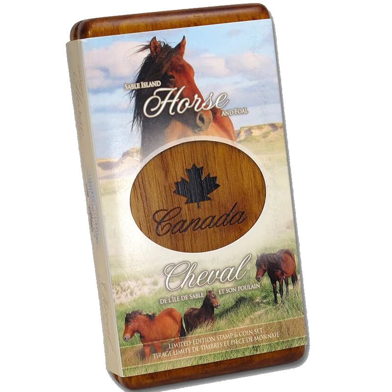 Королевский монетный двор Канады выпустил третий набор из серии «Дикая жизнь Канады». Дизайнер Christie Paquet. У нее качество пруф. Поставляется в оригинальном футляре с сертификатом подлинности. В комплект входит буклет о лошадях с острова Сейбл и две марки номиналом 2$ (одна в идеальном состоянии, другая погашена). Тираж: 10108 штук.