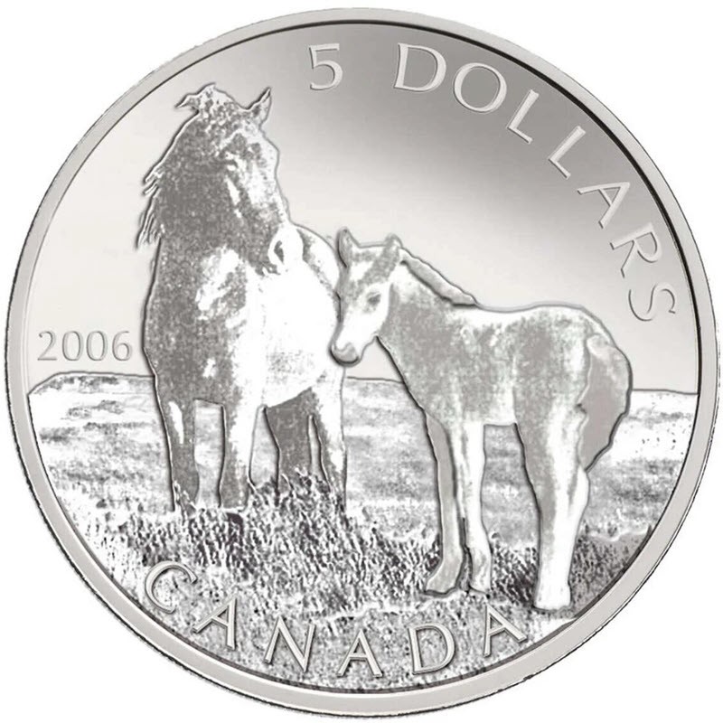 На реверсе изображена лошадь и жеребенок с острова Сейбл. Вдоль канта надпись: 2006 5 DOLLARS CANADA (год чеканки, номинал, страна-эмитент).