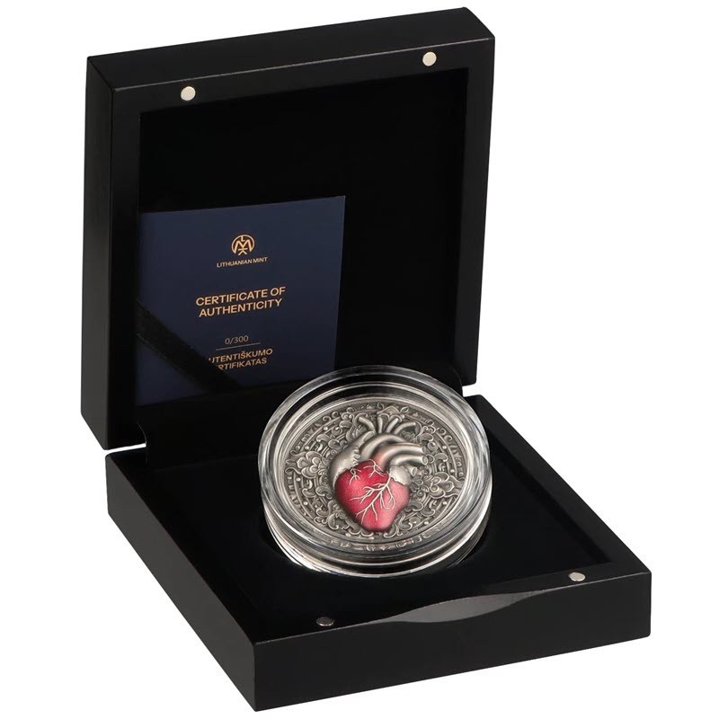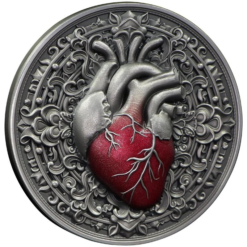 Эта удивительная серебряная монета весом в 3 унции является первой из серии «Эссенция» и посвящена одному из самых жизненно важных органов нашего тела: сердцу! Сердце человека играет фундаментальную роль в организме, и очень важно тщательно о нем заботиться. У неё впечатляющий горельеф в 4 мм и качество античной отделки. Поставляется в деревянном футляре с сертификатом подлинности. Тираж: 300 штук.