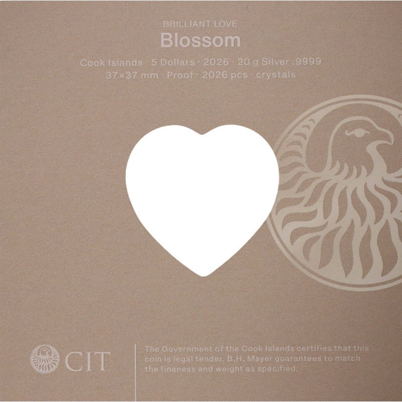 Серебряная монета Островов Кука "Цветущая любовь" 2026 г.в., 20 г чистого серебра (проба 9999)