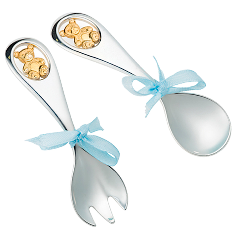 Набор детских столовых приборов "Мишки" 2026 г.в., 55 г стерлингового серебра