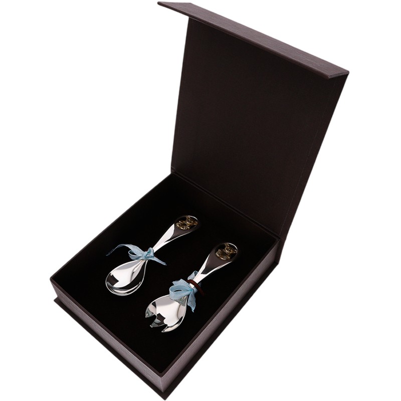 Этот изящный набор детских серебряных столовых приборов «Мишка» станет поистине запоминающимся подарком на светлый праздник рождения малыша или крестины. Набор включает два прибора – ложку и вилку, изготовленных вручную из серебра 925 пробы и словно созданы для нежных ладошек маленького гурмана. Их гладкий, блестящий облик подчеркивает тонкость обработки металла, а ручки украшены маленькими позолоченными фигурками мишек. Аккуратно перевязанные шелковыми лентами, приборы излучают особое очарование и готовы стать семейной реликвией, передаваясь из поколения в поколение.