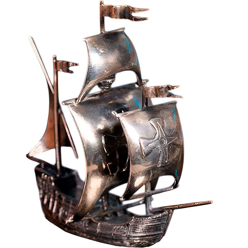 Фигурка «Корабль» — не просто сувенир, а символ храбрости первооткрывателей новых земель. Вес 69,03 грамм 925 пробы серебра, размеры 105 Х 40 Х 83 мм.