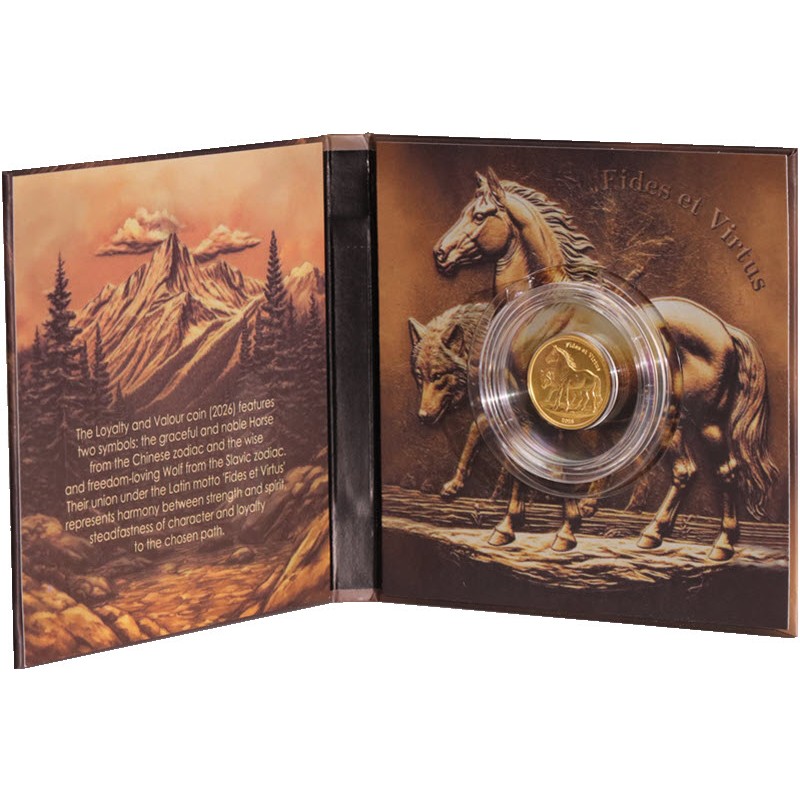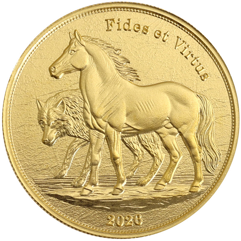 На реверсе изображены Волк и Лошадь, идущие вместе. Вверху надпись: Fides et Vertus (Верность и Доблесть). Внизу: 2026 (год чеканки).