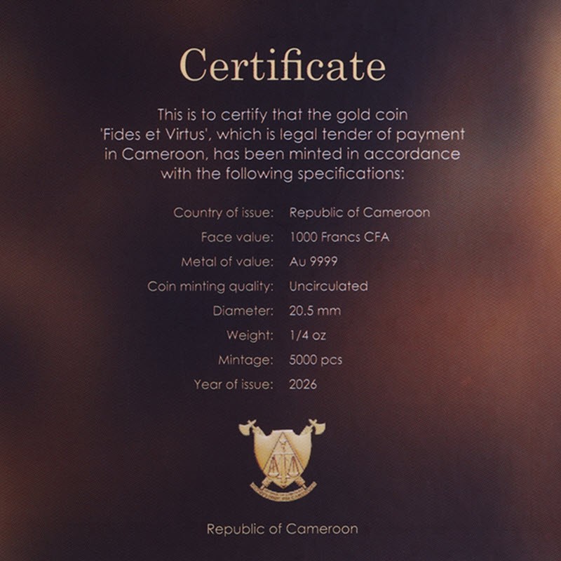 Вес монеты ¼ унции. Гурт рифлёный. Поставляется в блистере с капсулой и сертификатом подлинности. Тираж монеты: 5000 штук.