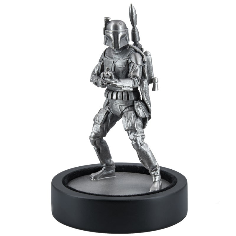 Эта чудесная серебряная миниатюра весом 150 грамм от Новозеландского Монетного Двора (NZ Mint) из серии «Звездные войны» посвящена Боба Фетту. Работа 3D-дизайнер Алехандро Перейра Эскурра (Alejandro Pereira Ezcurra). У неё размер 90 Х 50 мм и качество античной отделки. Поставляется в оригинальном футляре «Звездных войн™». Тираж: 1000 штук.