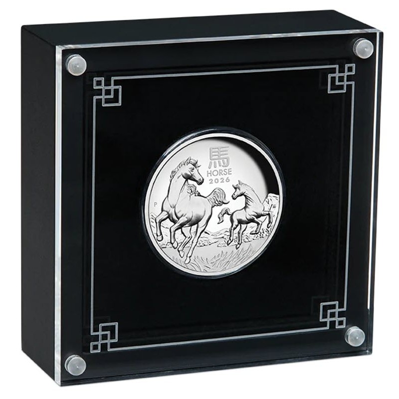 Серебряная монета Австралии "Год Лошади" 2026 г.в. (пруф высокий рельеф), 31.1 г чистого серебра (проба 9999)