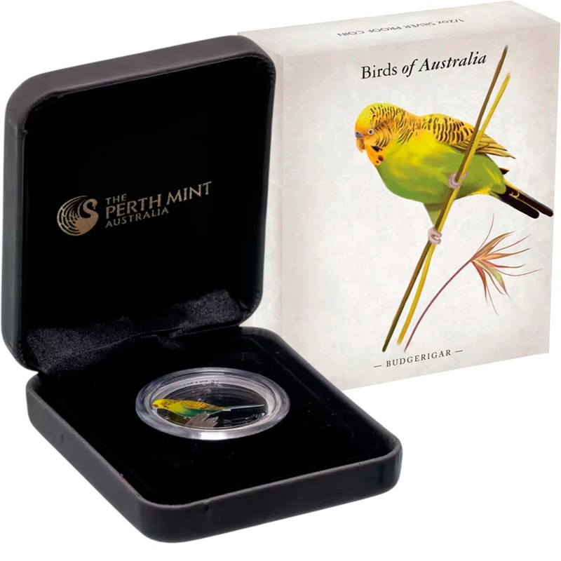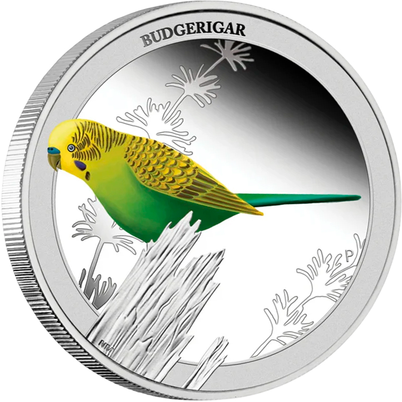 Серебряная монета весом в пол унции из серии «Птицы Австралии» от Пертского монетного двора Австралии посвящена уникальной птице австралийского континента – волнистому попугайчику.