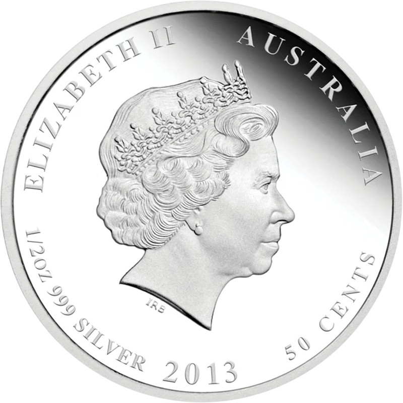 На аверсе изображен профиль королевы Елизаветы II дизайнера Яна-Рэнка Бродли. Вверху надпись ELIZABETH II  AUSTRALIA (Елизавета II, страна-эмитент). Внизу по ободу указан год чеканки (2013), номинал монеты (50 CENTS), вес (1/2 oz) и проба серебра в монете (999 SILVER).