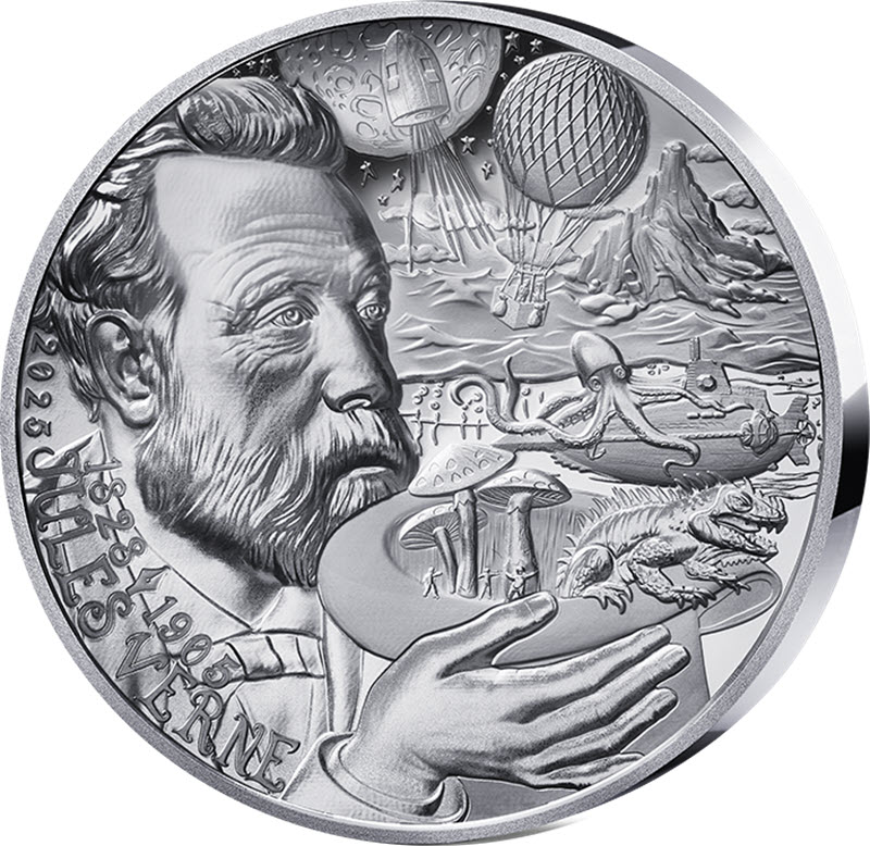 Серебряная монета Франции "Искусство пера. Жюль Верн" 2025 г.в. (пруф), 31.1 г чистого серебра (проба 999)