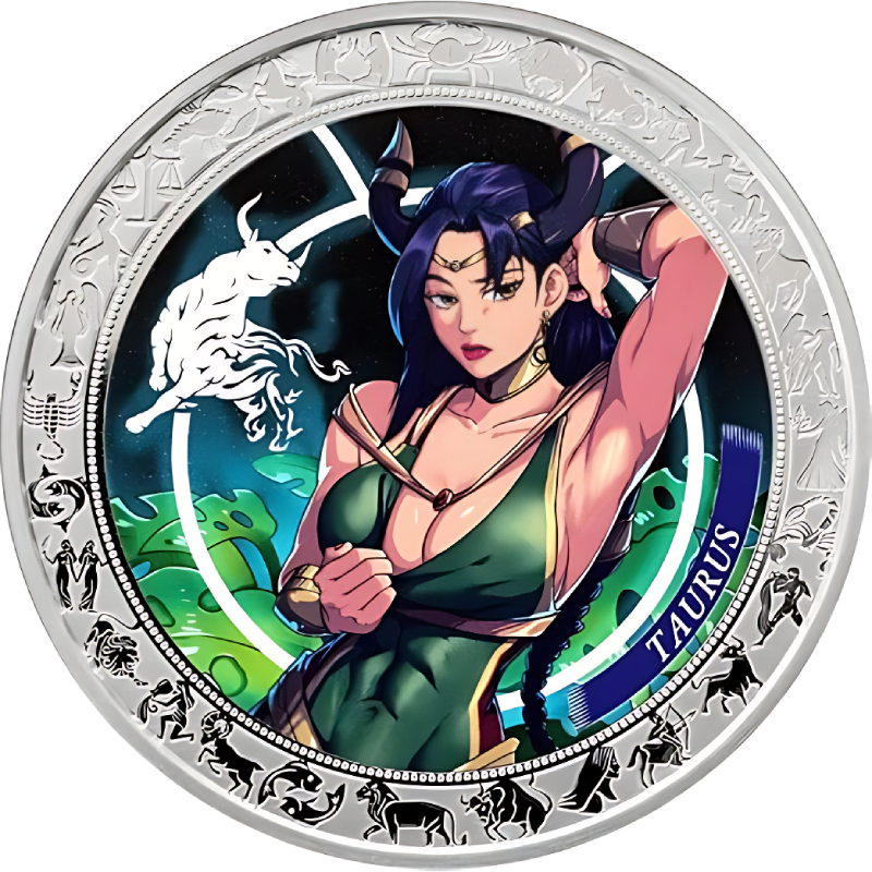 Эта красивая серебряная монета из серии “Аниме Зодиак” посвящена второму астрологическому знаку зодиака - “Телец” (Taurus). Считается, что к нему принадлежат рождённые с 21 апреля по 20 мая. Астрологи часто описывают рожденных под знаком зодиака Тельца как надежных, стабильных и преданных людей. Они ценят дружбу и проявляют невероятную верность близким.