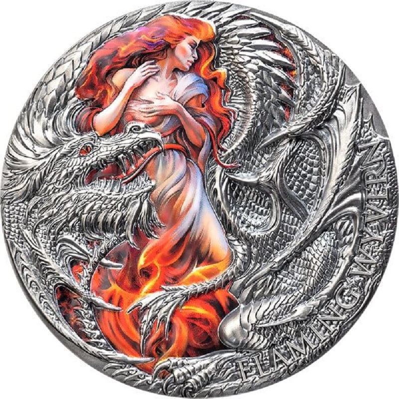 Эта красивая серебряная монета весом 2 унции относится к серии "Драконология" и посвящена легендарному дракону, известному также как Пламенная Виверна. Монета имеет качество Antique Finish, обладает высоким рельефом и поставляется в футляре вместе с сертификатом подлинности. Ограниченный тираж - всего 500 штук по всему миру!