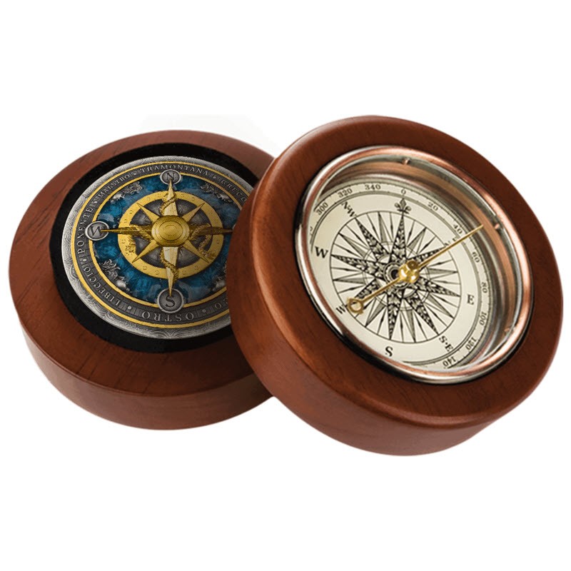 Эта потрясающая серебряная монета весом 2 унции посвящена компасу - символу направления, выбора и непоколебимой цели. У нее качество античной отделки, выборочное золочение и заполнение смолой. Поставляется в оригинальном футляре с компасом и сертификатом подлинности. Тираж: 500 штук.