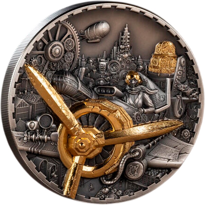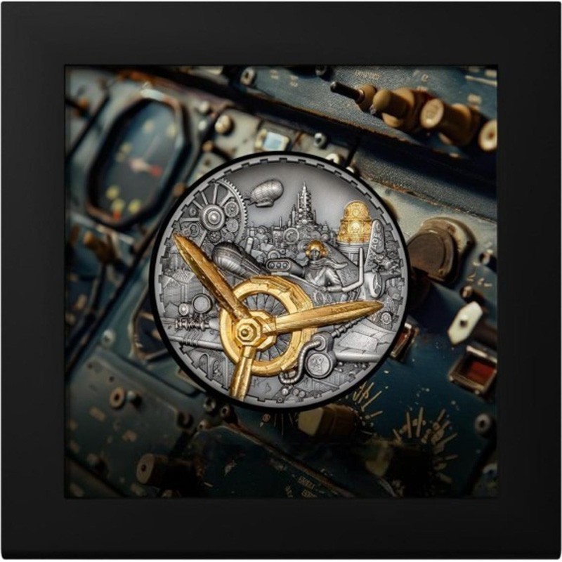 Серебряная монета Островов Кука "Стимпанк. Авиация" 2025 г.в., 93.3 г чистого серебра (проба 999)