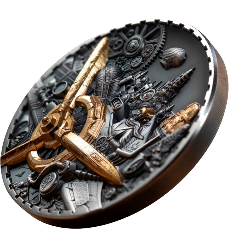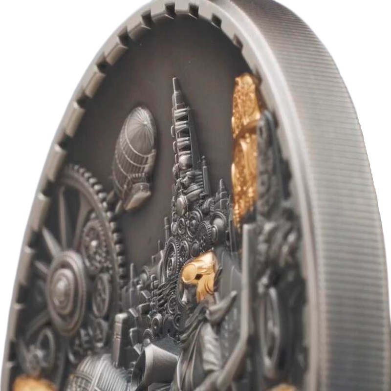 Эта серебряная монета весом в 3 унции – шестая из серии «Стимпанк» (Steampunk). У нее качество античной отделки и выборочное золочение, благодаря технологии Smartminting имеет сверх-высокий рельеф. Поставляется в оригинальном футляре с сертификатом подлинности. Тираж: 888 штук.
