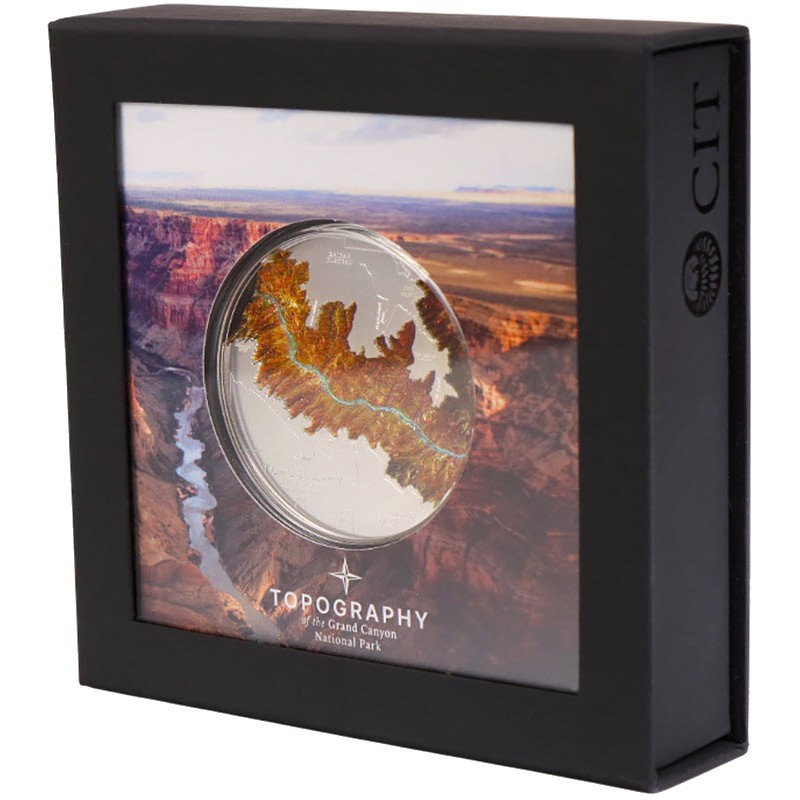 Серебряная монета Островов Кука "Топография: Гранд-Каньон" 2023 г.в., 155.5 г чистого серебра (Проба 9999)
