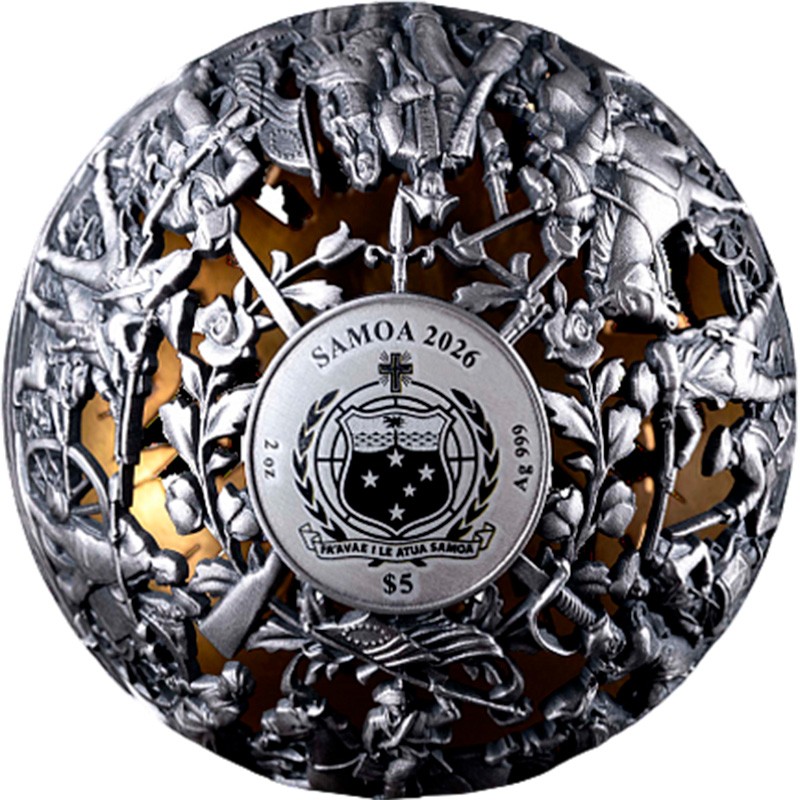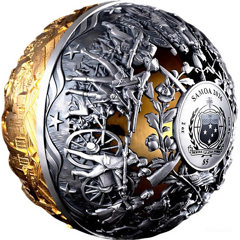 Серебряная монета Самоа "250 лет Независимости. Революция и Свобода" 2026 г.в., 62.2 г чистого серебра (проба 999)