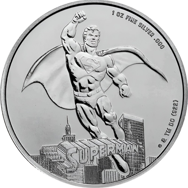 Эта чудесная серебряная монета с изображением Супермена — культового героя комиксов DC Comics.