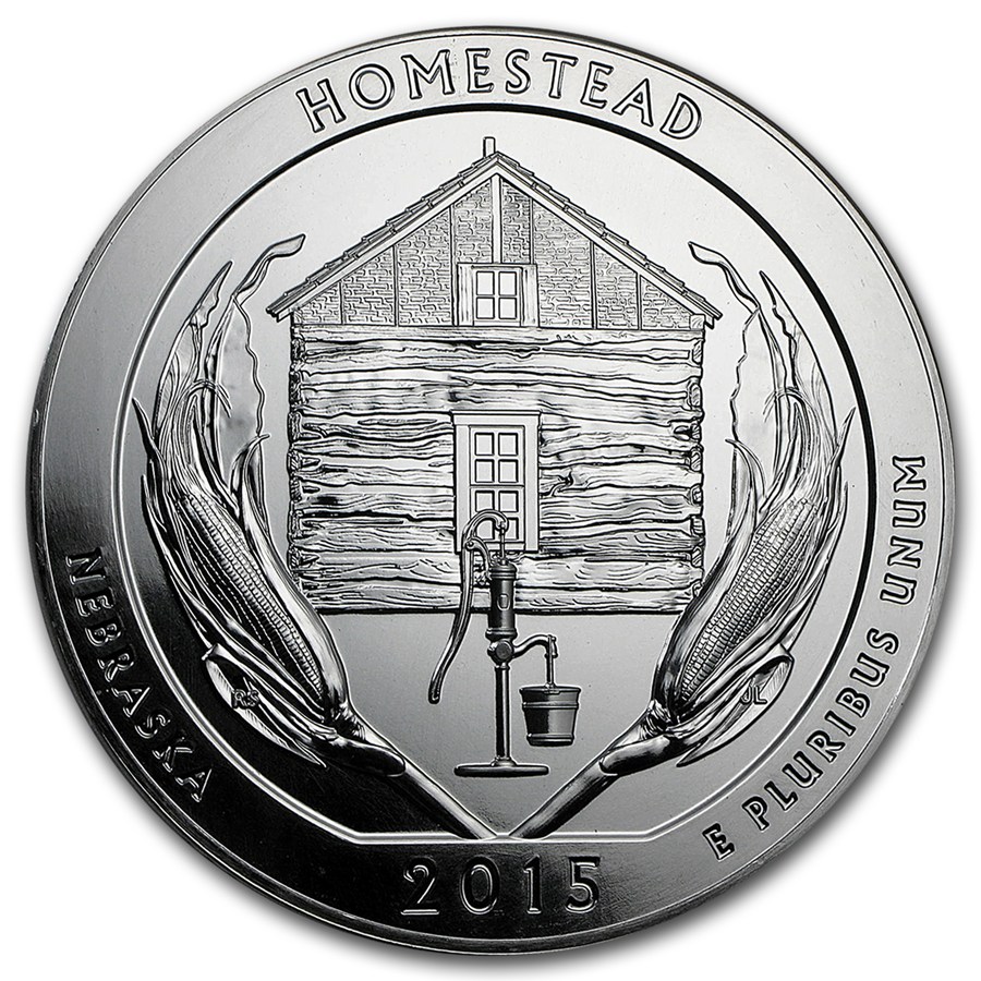 Серебряная монета США "Небраска. Национальный парк -Гомстед." 2015 г., 155,5 г чистого серебра (Проба 0,999)