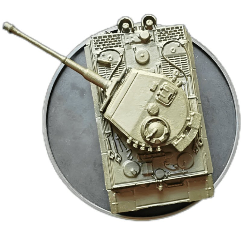 Танк PzKpfw VI Tiger разработан фирмой "Хеншель" в 1942 году и выпускался серийно с августа 1942 года до августа 1944 года. Танк имел сварной корпус коробчатого сечения с вертикальным расположением лобовых и бортовых листов толщиной 80-100 мм. В передней его части находилось отделение управления, в котором размещались механик-водитель и стрелок-радист, здесь же были смонтированы механизмы силовой передачи. Боевое отделение с массивной цилиндрической башней располагалось посередине танка. В башне монтировалась мощная полуавтоматическая пушка калибра 88-мм, созданная на базе зенитного орудия и с длиной ствола 56 калибров. Бронебойный снаряд этой пушки с дистанции 1000 м пробивал броню 115-мм, а подкалиберный с дистанции 500 м - 180-мм.