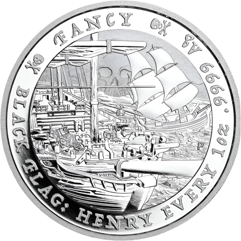 Серебряная монета Тувалу "Черный флаг. Генри Эвери" 2023 г.в., 31.1 г чистого серебра (проба 9999)