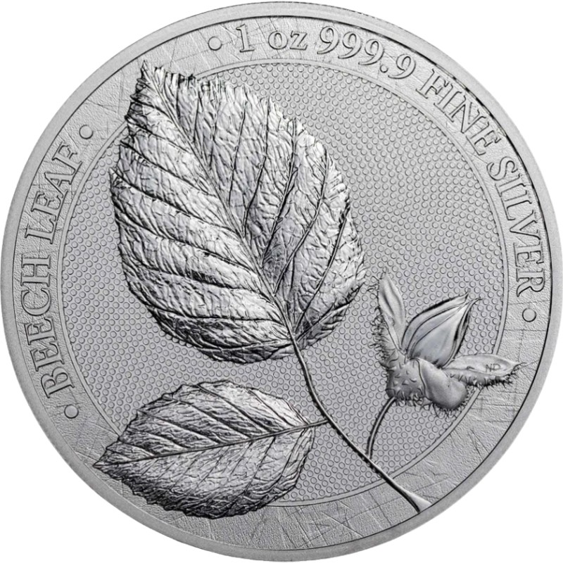 На аверсе изображён лист бука и его цветок. Вверху вдоль канта надписи: BEECH LEAF ∙ 1 oz 999.9 ∙ FINE SILVER (Лист бука, вес и проба серебра)
