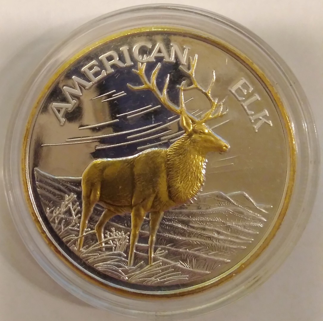 Серебряный жетон США «Американский Лось» отчеканен частным американским монетным двором и входит в серию «Дикая природа Северной Америки».