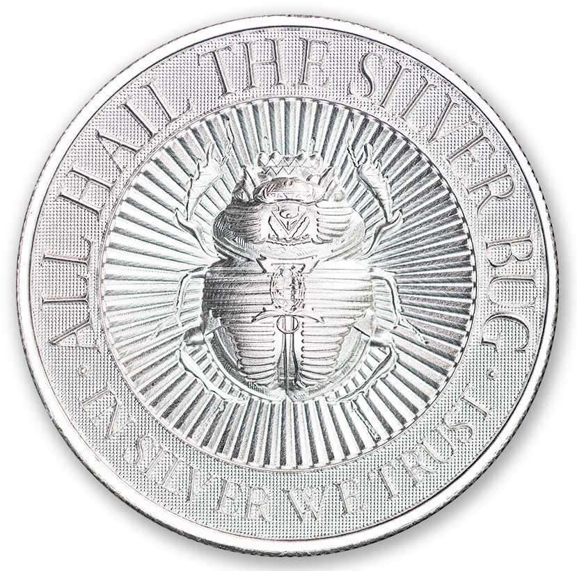 На реверсе изображен скарабей, от которого распространяются лучи. По ободу находятся надписи: вверху -«ALL HAIL THE SILVERBUG» (Да здравствует Сильвербаг; инвестор в серебро; подразумевается игра слов: bug – на англ., жук; в серии шутливо обыгрывается эта игра слов), а внизу – «IN SILVER WE TRUST» (В серебро веруем).