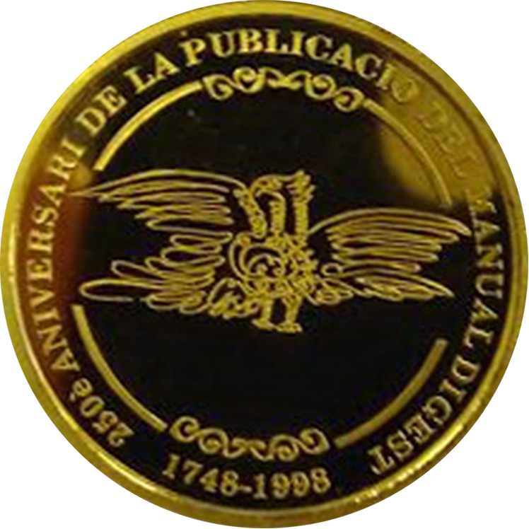 Золотая монета Андорры «250 лет публикации Руководства-справочника» 1998 года выпуска посвящена книге андоррского автора – адвоката Антони Фитер и Росселль под названием «Manual Digest» (Руководство-справочник по нейтральным долинам Андорры) в 1798 году. С этой книги ведет отсчет андоррская литература. В этой книге собраны предания, культурные и религиозные традиции и факты, законодательство Андорры.