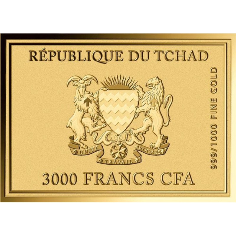 На аверсе всех монет изображен герб Республики Чад. Вокруг герба надпись: REPUBLIQUE DU TCHAD 999/1000 FINE GOLD 3000 FRANCS CFA (страна-эмитент, номинал, проба золота).
