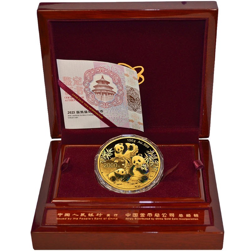 Золотая монета Китая "Панда" 2025 г.в. (пруф), 150 г чистого золота (проба 999)