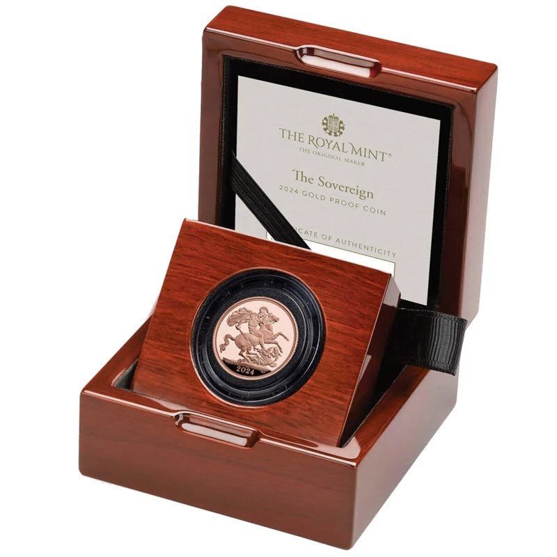 Золотая монета Великобритании "Соверен" 2024 г.в. (пруф), 7.32 г чистого золота (проба 917)