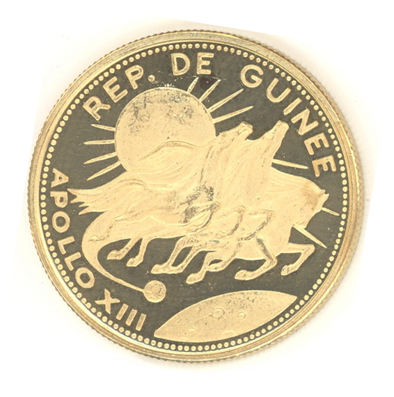 Золотая памятная монета Гвинеи "Аполло 13", 7,2 гр. чистого золота (0,900 пробы)