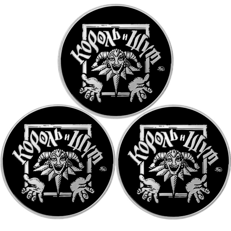 Набор из трех медно-никелевых жетонов посвящен панк-группе и фильму «Король и Шут. Навсегда». Этот проект - результат коллаборации Московского монетного двора с «Яндекс. Студией» и первая коллекция, посвящённая фильму.