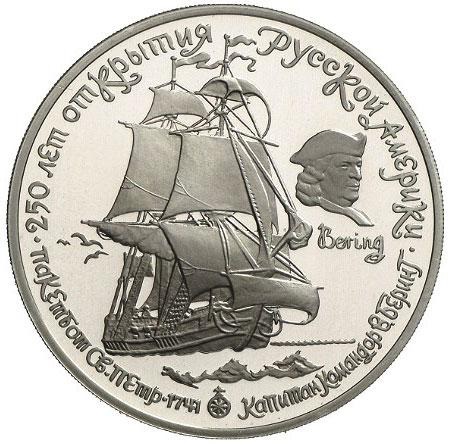 Монета СССР 25 рублей «Пакетбот «Святой Петр» и капитан-командор В. Беринг» 1990 года , 31.1 чистого палладия, проба 999