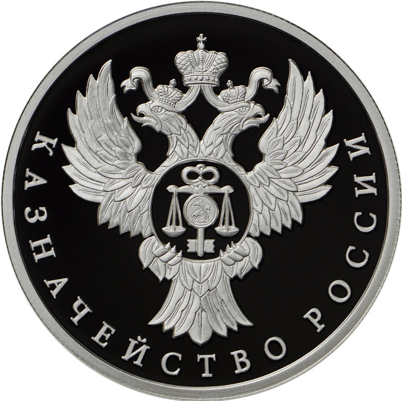 На реверсе изображена эмблема Казначейства России. Внизу надпись: КАЗНАЧЕЙСТВО РОССИИ.