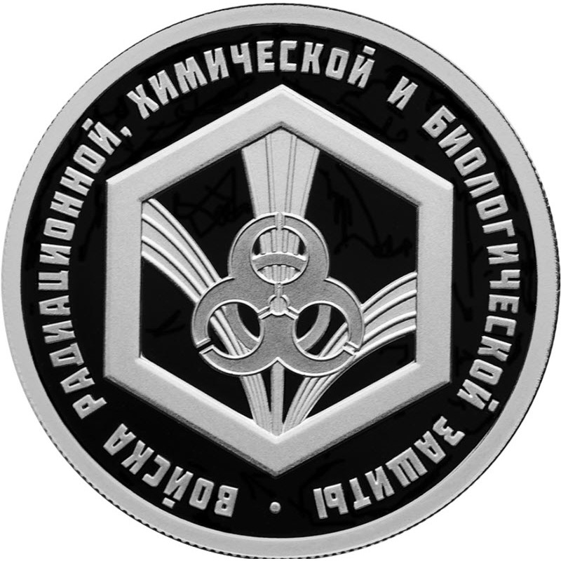 Российская серебряная монета 2026 г. выпуска качества пруф из серии «Вооруженные силы Российской Федерации» посвящена войскам РБХЗ. Тираж: 5000 штук.