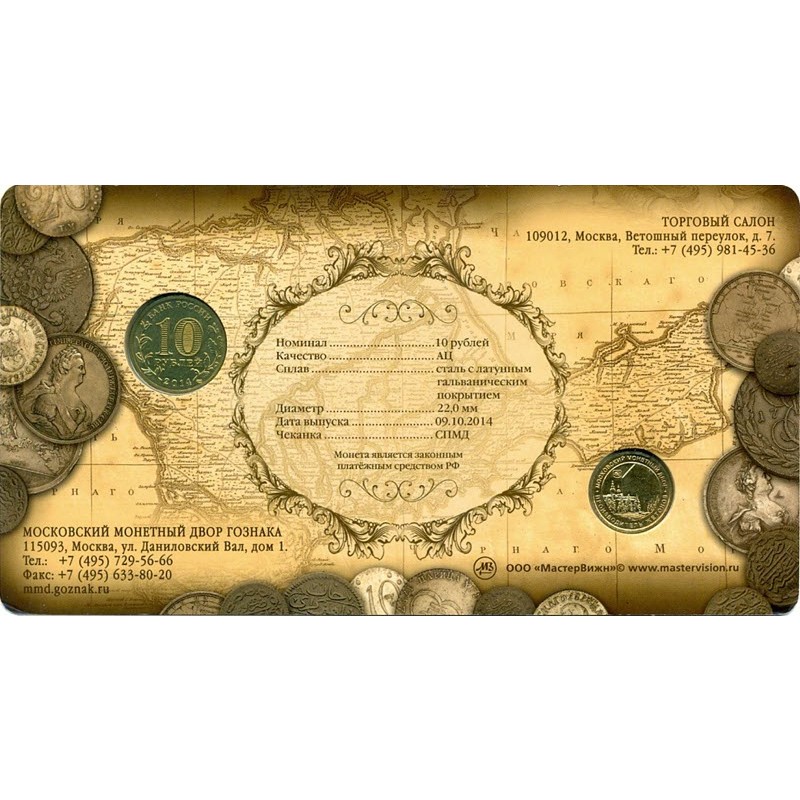 Монета «Республика Крым» 10 рублей, 2014 г, СПМД, сталь с латунным покрытием. Тираж: 10000000 штук.