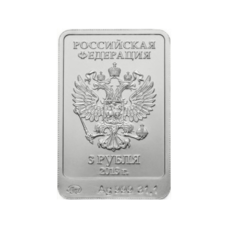 Аверс: рельефное изображение Государственного герба Российской Федерации, вверху в две строки – надпись: "РОССИЙСКАЯ ФЕДЕРАЦИЯ", под гербом в две строки – номинал монеты: "3 РУБЛЯ" и дата: "2013 г.", внизу вдоль канта обозначения: слева – товарного знака монетного двора, в центре – металла по Периодической системе элементов Д.И. Менделеева и пробы сплава, справа – содержания химически чистого металла.