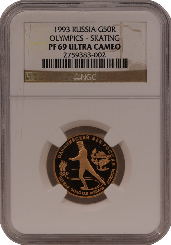 Золотая монета Банка России 1993 года из серии «Олимпийский век России» посвящена Н.А. Панину-Коломенкину. У нее качество пруф. Тираж: 7500 штук.