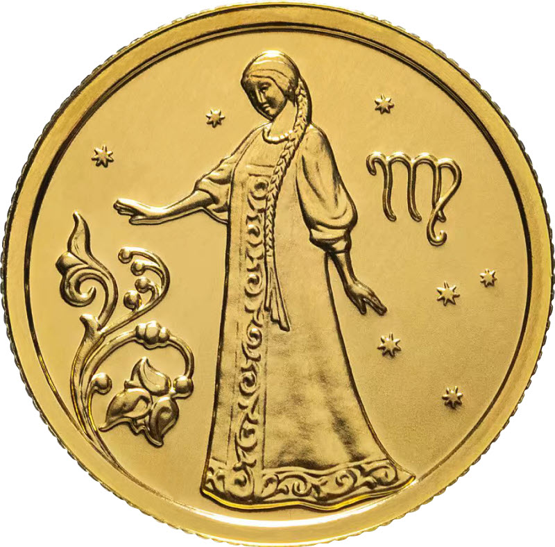 Золотая монета России «Знаки Зодиака - Дева» 2005 года выпуска.