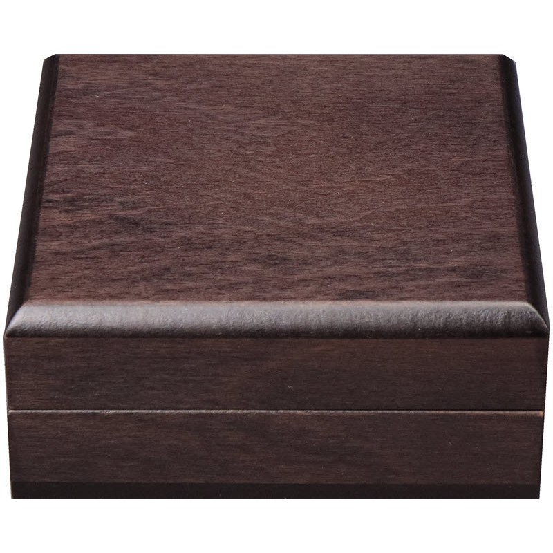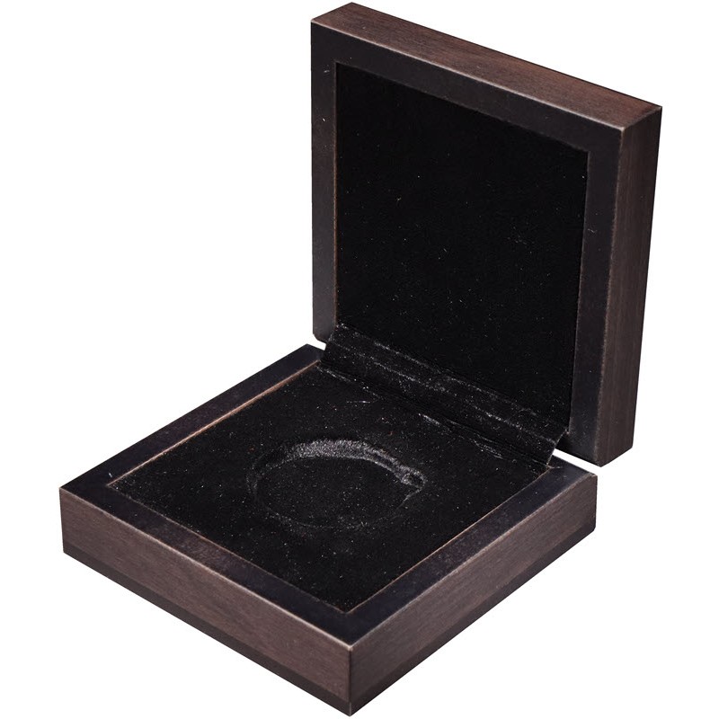 Наружный размер: 90 Х 90 Х 40 мм. Бархатный ложемент черного цвета: диаметр 37 мм, глубина 5 мм.